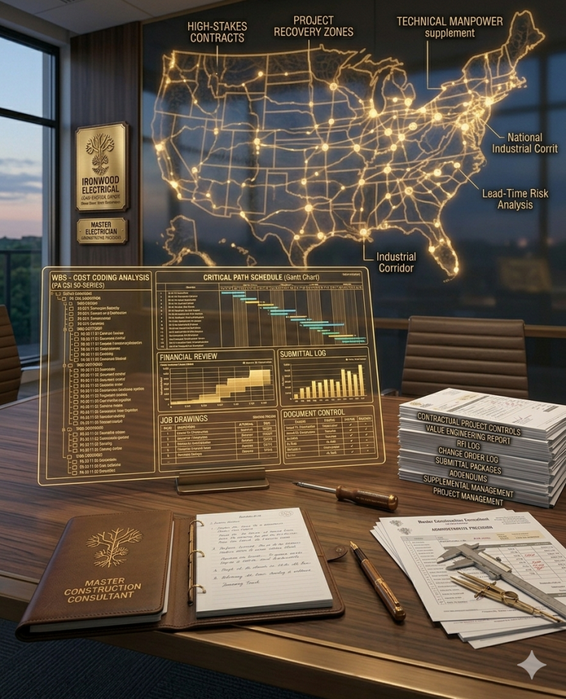 - For the Industrial Client: Ironwood is an elite Supplemental Force bridging the gap for other electrical contractors who are falling behind schedule. We provide rapid mobilization of up to 100 skilled persons (OSHA 10/30 certified), contractual recovery management, Critical Path scheduling (Gantt Chart), and detailed WBS-Cost Code analysis.
